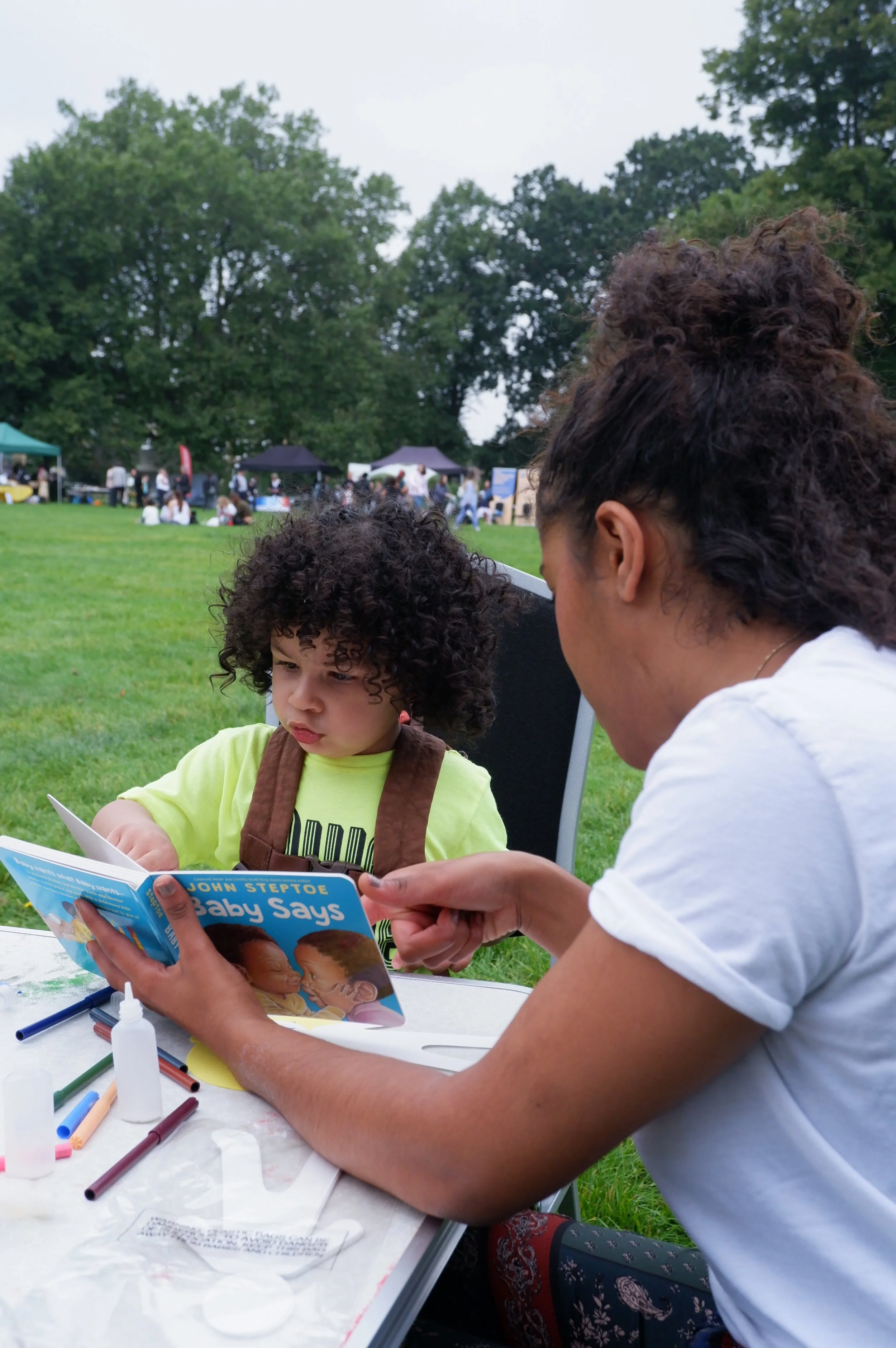 We had such a wonderful day at W12 Together local festival held in Wormholt Park. We had a wonderful day making alien themed puppets to explore what the character M.A.T from our new show “The Sun Shines for Everyone” could look like and handed out books to the community as part of a fun competition led at the mainstage by our founder Jac O’Kody.
